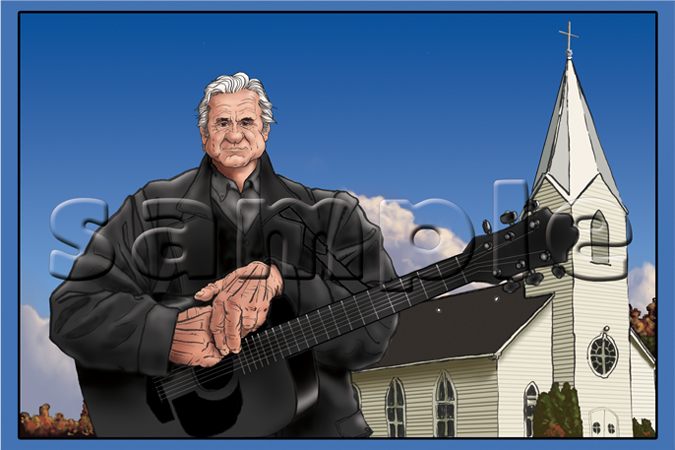 This print, “The Man in Black,” measures 17.5 X 11.5” and is a tribute to the late Johnny Cash. I always felt Mr. Cash did his best work in his later years when he worked with Rick Rubin. I wanted to emphasize the power of his figure, sound, and soul. The art comes with a 2” mat, making it 21.5 X 15.5.”